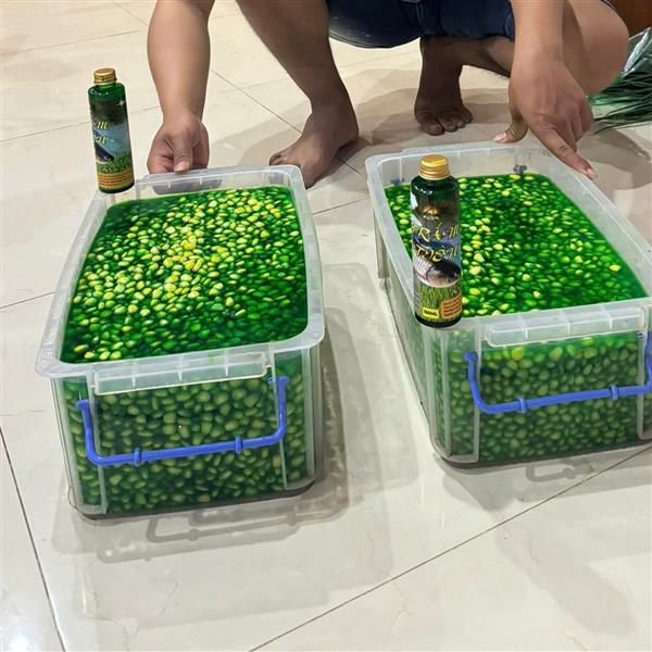 B3 :Khi ngô và nước nguội cho 2 nắp hương liệu/1kg .Ủ ngô từ 10 tiếng đỏ lên khi câu chắt bỏ hết nước thêm 3 nắp hương liệu/1kg ủ 30p vừa xả vừa câu.
